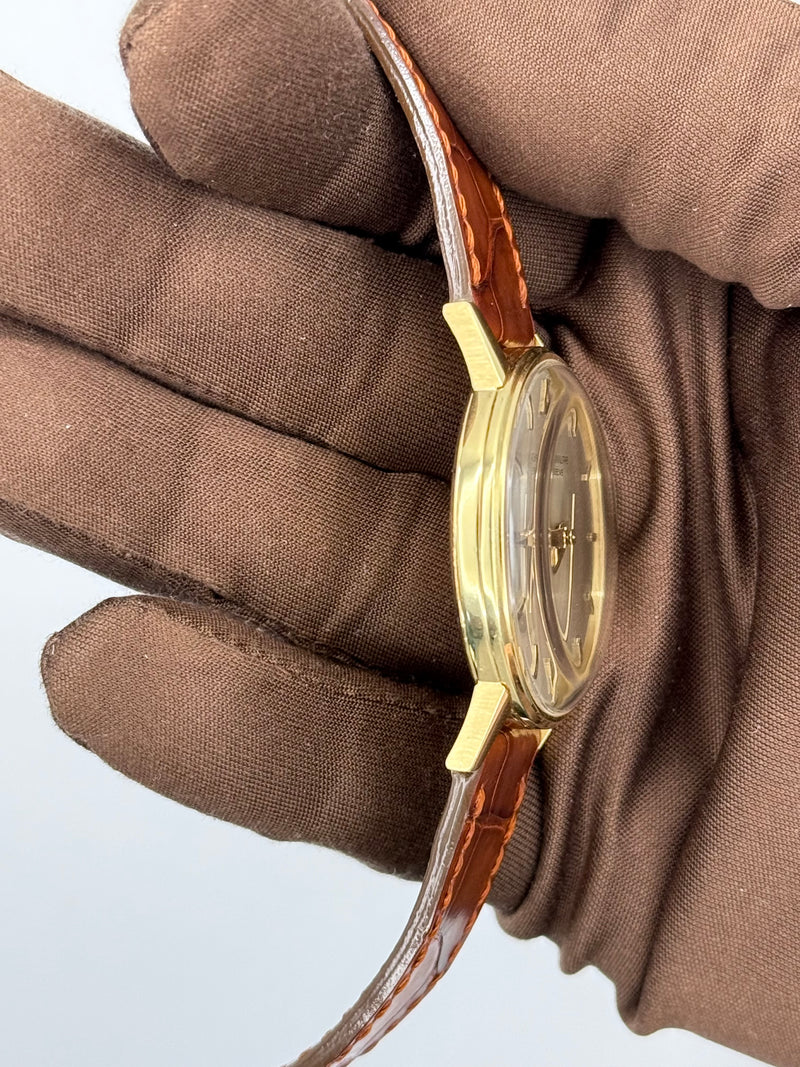 1970 Omega Wood Dial 29 x 32mm Yellow Gold Wide 1970s